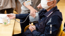 施設に到着後は、血圧や体温などのバイタルを測定し、体調を確認します。